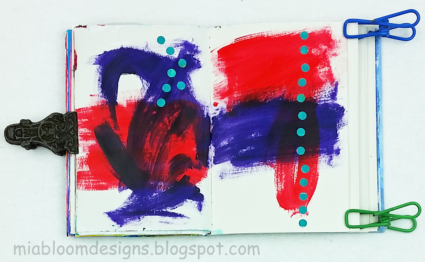 The accordion style book works well with a matchbook. I used Blick's White Sulphite Drawing Paper for the base of the accordion pages. Leftover scraps of altered bleeding tissue paper was used to decorate the covers of each book. Each page has a different artwork that was created using paper scraps, acrylic paint and markers.